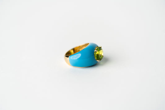 Peridot and Blue Enamel Roma Ring