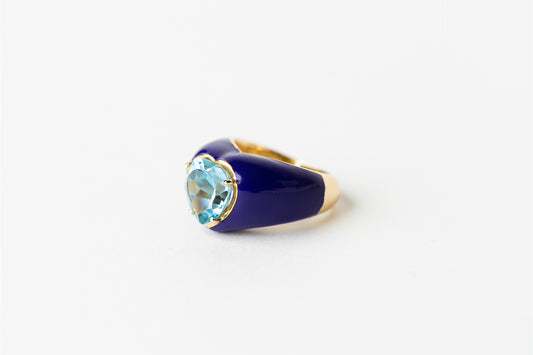 Blue Topaz Heart and Purple Enamel Roma Ring