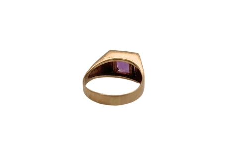 Pretty vintage amethyst ring dating from 1970-71. The round stone is claw set on a square 9ct gold surface allowing light to play with the stones lovely purple colour.