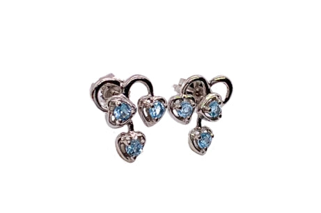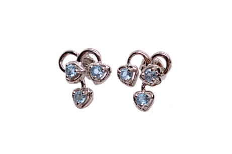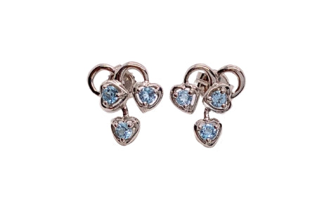 Lovely vintage 18ct gold three (six altogether) stone aquamarine earrings in heart shaped settings. Piercing blue brilliant cut aquas possibly to match her eyes? These beauties come to life on the wearer.