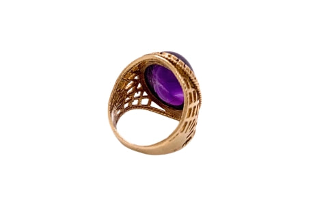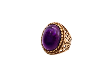 Giving Regal and Papal at the same time. A large smooth amethyst in an intricate golden basket weave setting. Vintage cocktail classic. Don’t forget your chalice.
