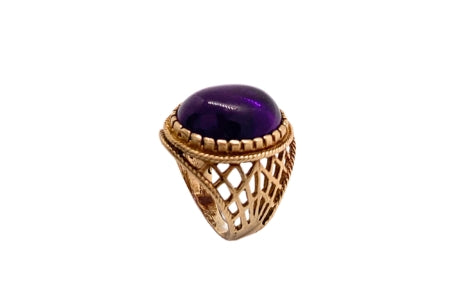 Cabochon Amethyst Basket Ring in 9ct Gold