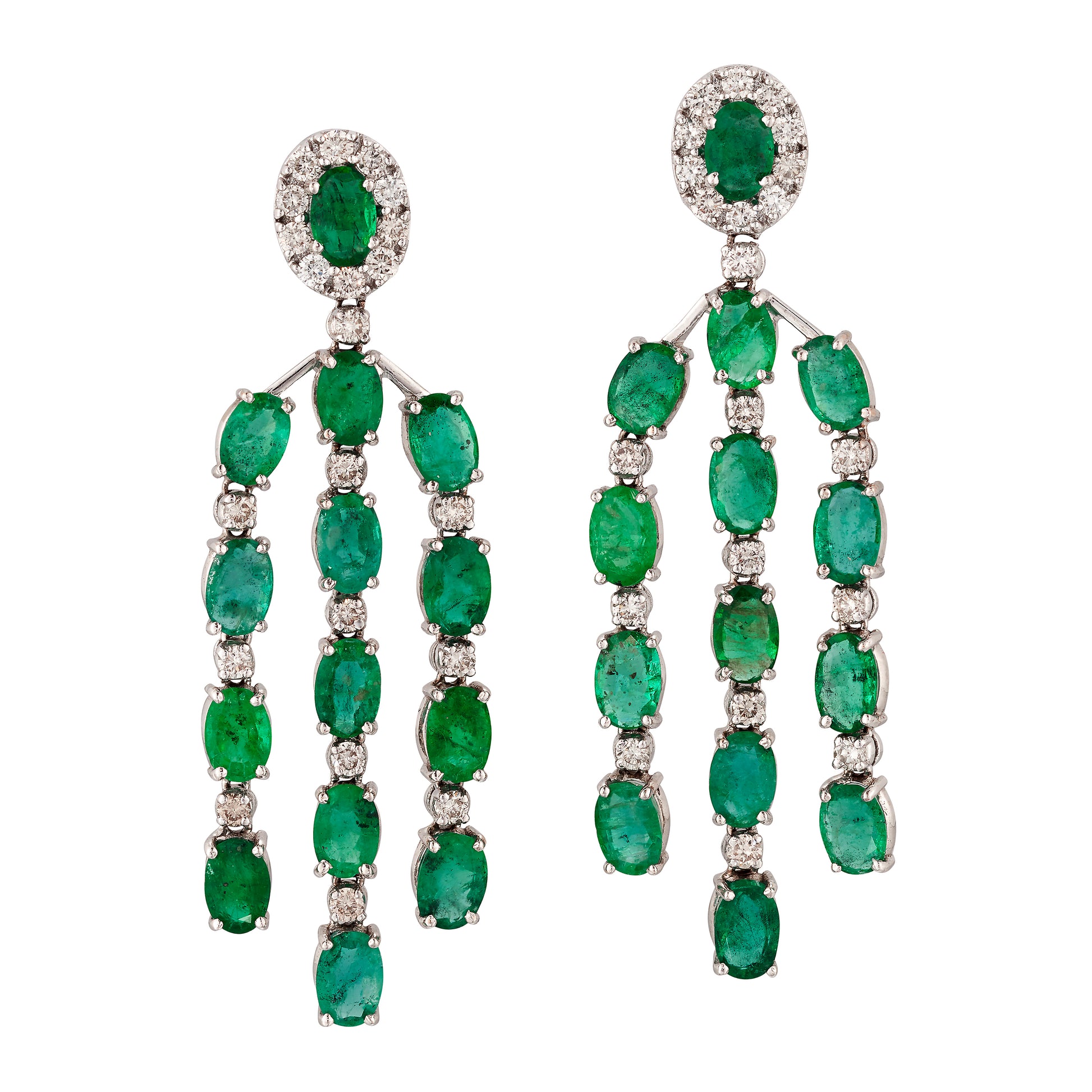 Emerald and Diamond Chandelier Earrings, 18 Carat White Gold
