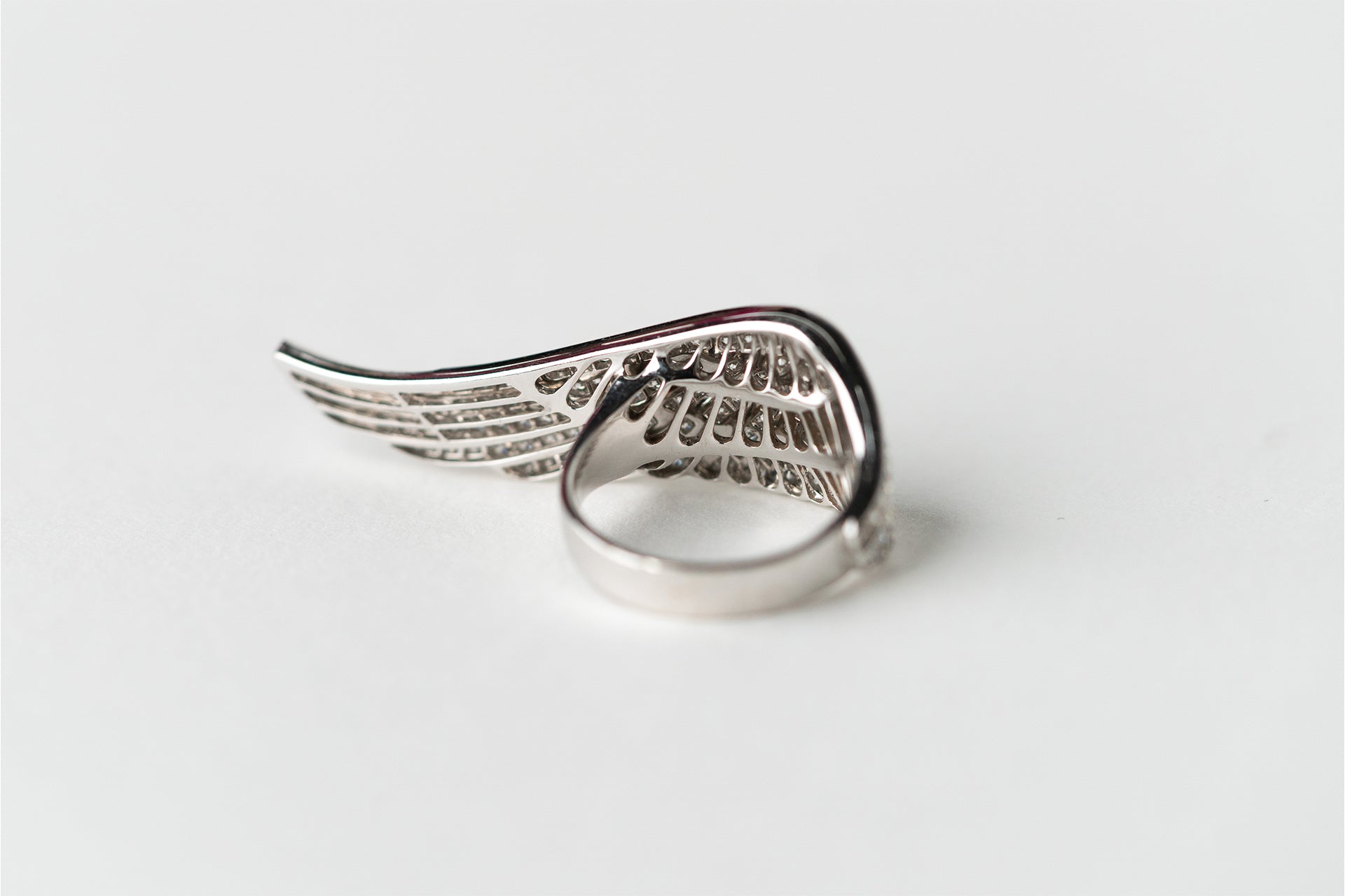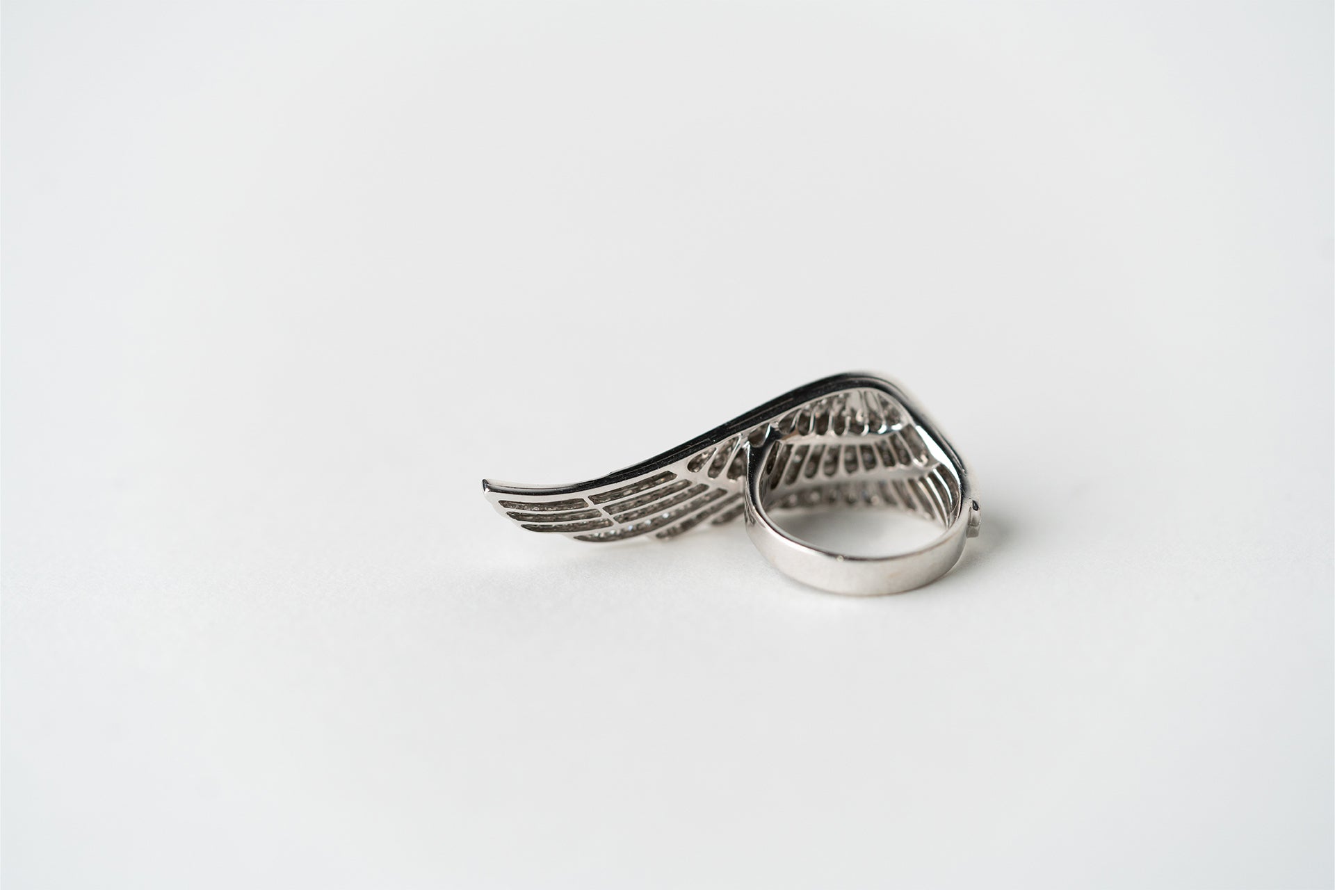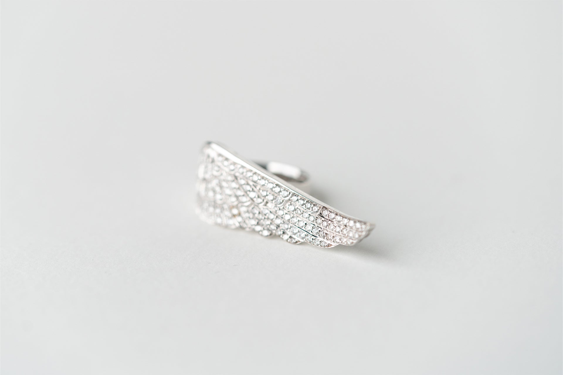 An iconic piece of British jewellery history created by the oldest jewellery house in the world. The design depicts a wing which spans across two fingers in a shimmering diamond undulation.